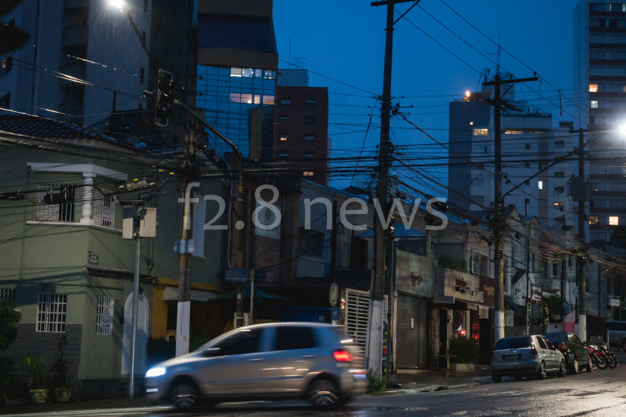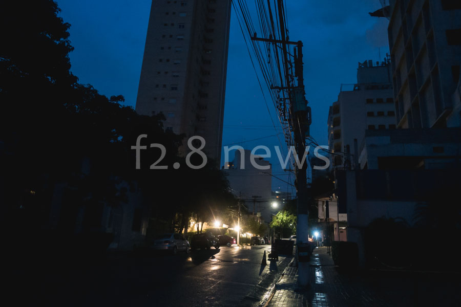 Trecho da Rua Itapicuru em Perdizes, zona oeste da capital, sem luz após a forte chuva que atingiu a cidade de São Paulo no final da tarde desta quinta (28).